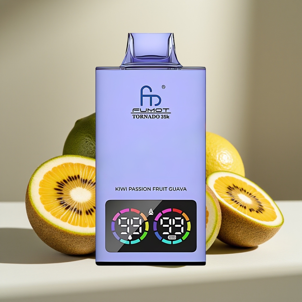 Fumot Tornado 35K Disposable Vape Kivi Marakuļa Gvajava, Dual Mesh Coil, 35000 Puffs