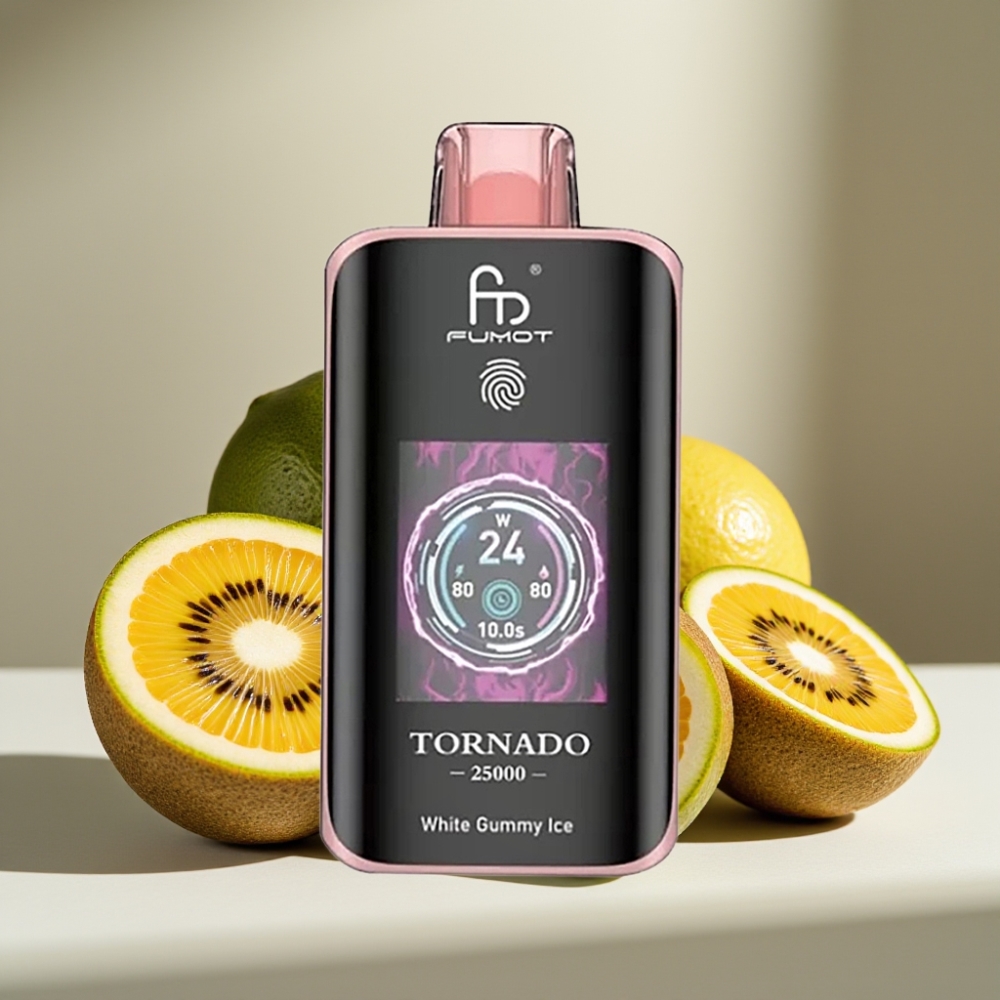 Fumot Tornado 25000 Puffs Disposable Vape Kivi Marakuķe Guava, HD ekrāns, 700mAh, 20ml