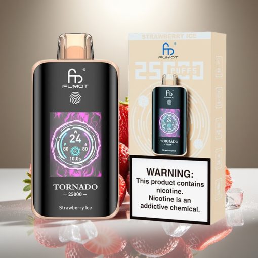 Fumot Tornado 25000 Puffs Zemeņu Ledus, HD Ekrāns, 700mAh, 20ml, Type-C
