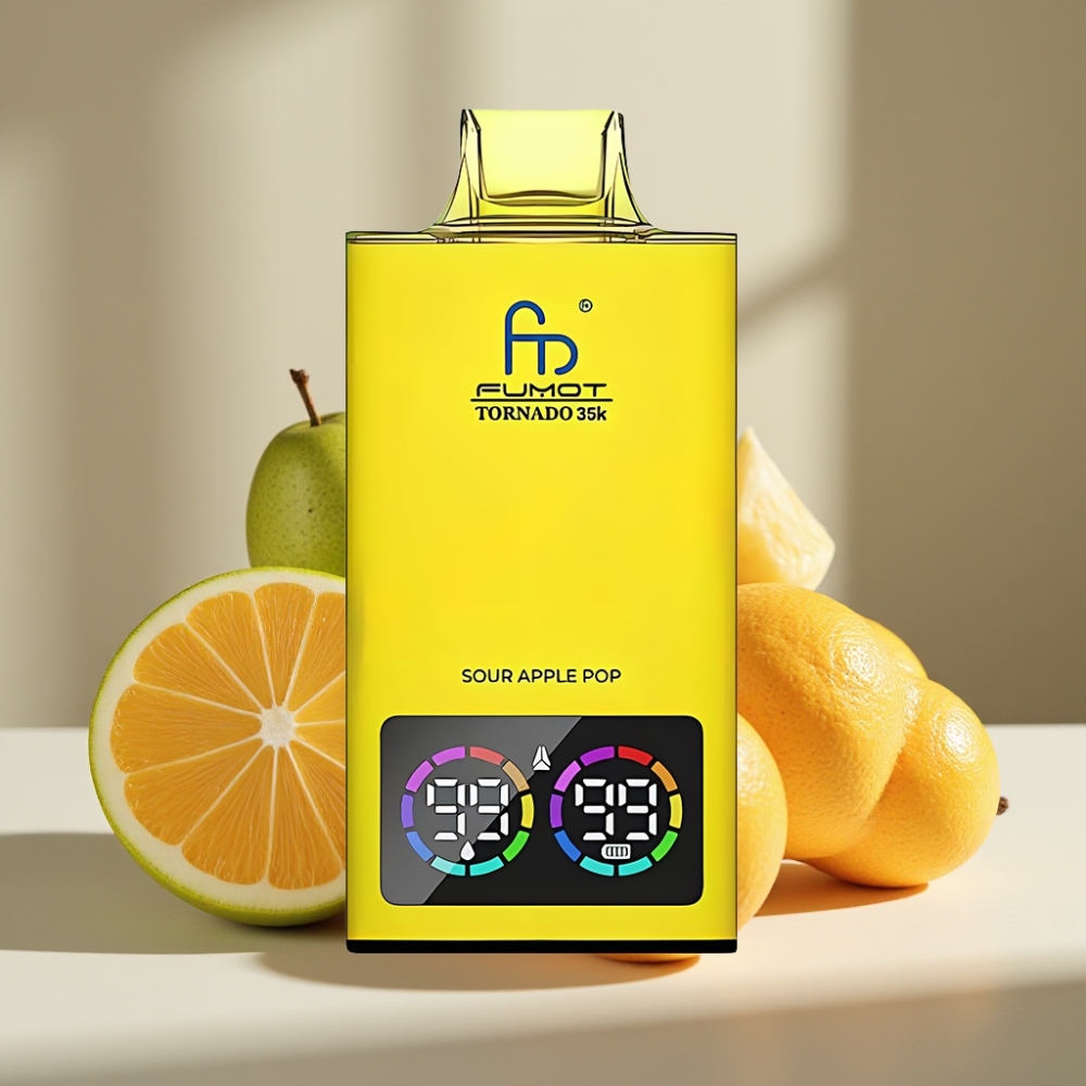 Fumot Tornado 35K Disposable Vape Skābo ābolu pops, Dual Mesh Coil, 35000 Puffs, USB-C