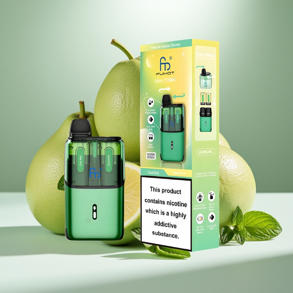 Fumot Ultra T32000 Disposable Vape Vēsā Mētra – Spearmint, 32000 pūki, 24ml, 20mg