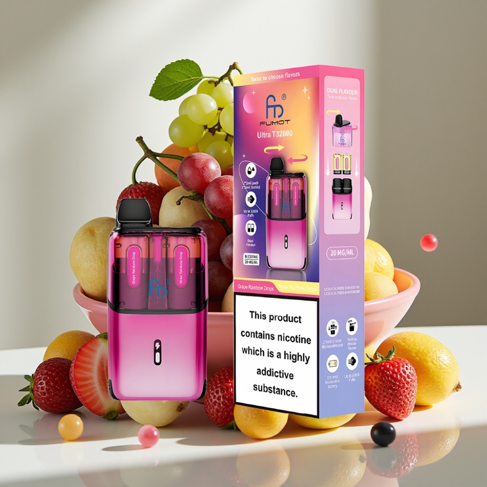 Fumot Ultra T32000 Disposable Vape Vīnogu Varavīksnes Pīpes – Zemeņu Varavīksnes Pīpes, 32000 Iekšpūšu, 24ml